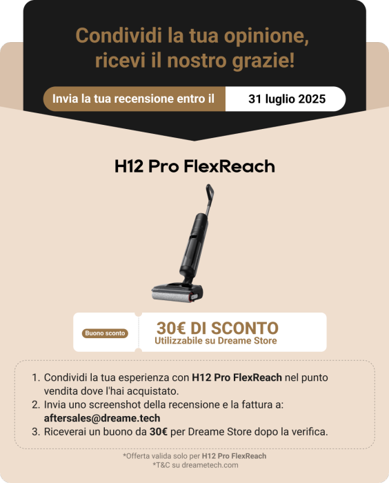 Hai provato il Dreame H12 Pro FlexReach? Vogliamo conoscere la tua opinione! 🧼⚡ Segui questi passaggi per ricevere un buono da 30 € per il Dreame Store 💸: 1️⃣ Scrivi una recensione sul sito do...visualizza tutto