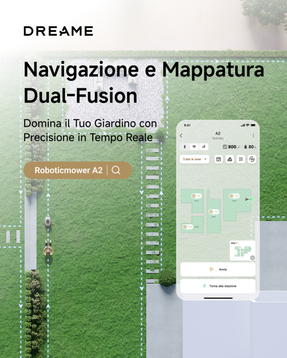 【A2】Il vostro prato, a modo vostro! Il tosaerba robotizzato A2 di Dreame offre altezze di taglio completamente personalizzabili, gestione multizona e modalità di taglio versatili per soddisfare le esigen...visualizza tutto